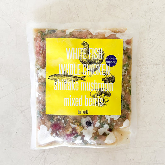 White fish and whole chicken with shiitake mushroom and mixed berries