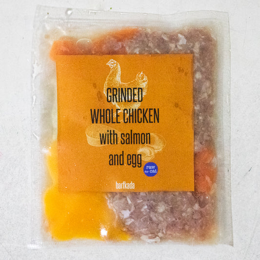 Grinded whole chicken with salmon and egg
