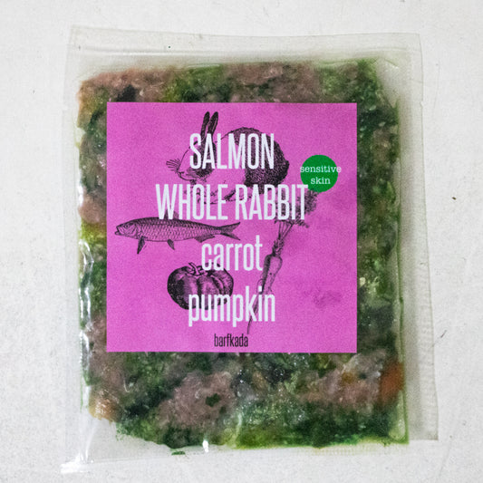Salmon and rabbit with carrot and pumpkin